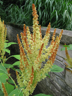 nwood, honeysuckle, buckthorn, hackberry, elm, etc.). To the left is another plant in the sunken garden. This is a neat new amaranth (