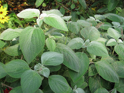 Plectranthus argentatus). This 30"+ tall annual offers large, felty, silver leaves and is great along a sunny border. We plant this every year and are asked about it frequently by visitors.