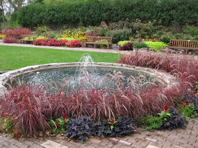 Gomphocarpus physocarpus 'Oscar') in the sunken garden. Also called cotton-bush or hairy balls, this annual milkweed is a conversation piece for these structures and its current 8' tall stature. Below are just some area shots I took this morning when the lighting was perfect (and before the rain!).