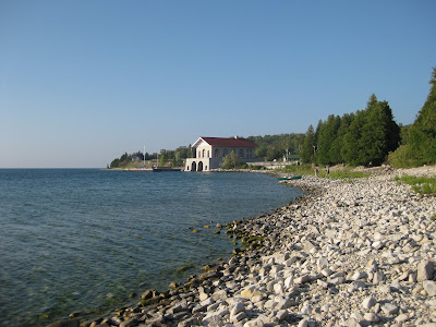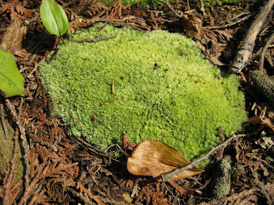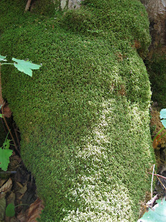 Little Jerry mowed today and did some garden clean-up. Marianne and I talked quite a bit about our upcoming fall plant sale (Sept. 11-18) and started gathering signs and creating lists. Marv and Terry did a nice job getting the yard organized this morning and while Terry moved on to mowing and watering, Marv sunk his teeth in to the moss project. Janice tidied up wedding sites, mowed and worked on the moss as well. Dr. Gredler was here mowing and Kay came in and provided a wide swath of weeding attention throughout the arboretum bed and other locations. She is a big reason why the gardens look so well kept. Mary H. was in and we saw Mary W. with four RECAPPERS today too. We also saw Bev D., Roger, Julie and Larry G. In between all our activities, we unloaded 500 asters and 500 mums for the upcoming sale. We now have to keep these (and other incoming plants) watered over the next two weeks or so. The weather looks to be cool this weekend which should help with watering chores. Below are some shots of authentic moss patches up on Rock Island (Door County, WI) where my 10 year old daughter and I were camping over the past four days. She got tired of me taking moss shots but I couldn't help myself (I also have ferns and wildflowers...). The two bottom photos include the historic boat house on Rock Island (seen from the beach in front of our campsite) and one of our spectacular sunsets, also from the campsite.