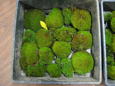 We talked alot about moss today. With our visit to Dale's garden a couple weeks ago, we decided to replicate many of his ideas. Janice and Marv were given the charge of renovating our moss island and when I came in today, Marv had brought in moss (below), moss troughs and rocks (both above) and we soon noticed that Janice had already collected over 20 square feet of moss earlier in the week and it was in carboard flats, ready to go. With some assistance from Terry, Marv and Janice started the transformation and will continue over the coming weeks. Marianne, Little Jerry and I joined in the conversations about where we've seen moss and how it can be collected and utilized. I look forward to the final result and am impressed with Marv and Janice's "pluck" regarding this project.