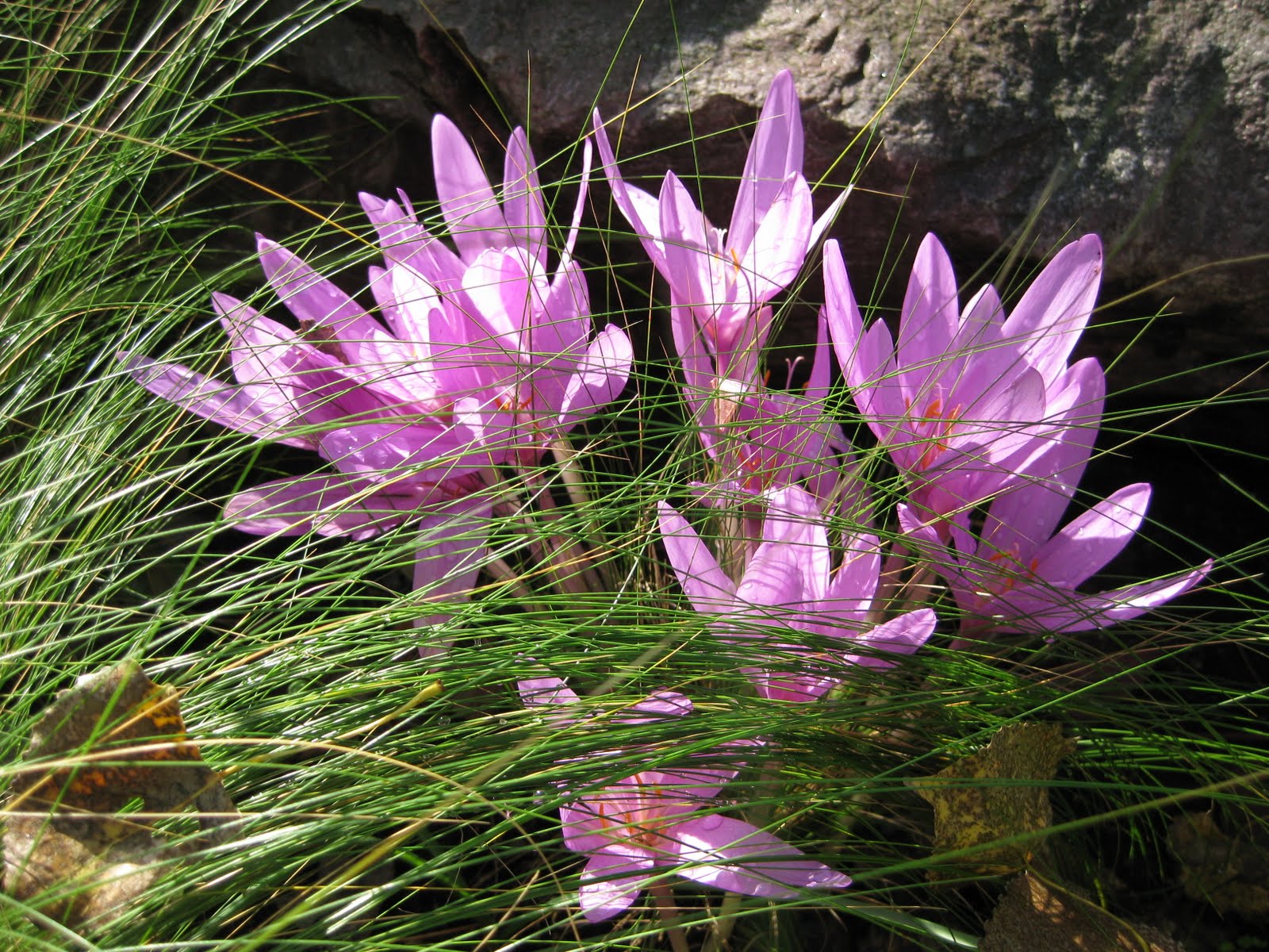 Autumn crocus...see previous blogs about that) blooming up thru some annual Mexican feather grass (