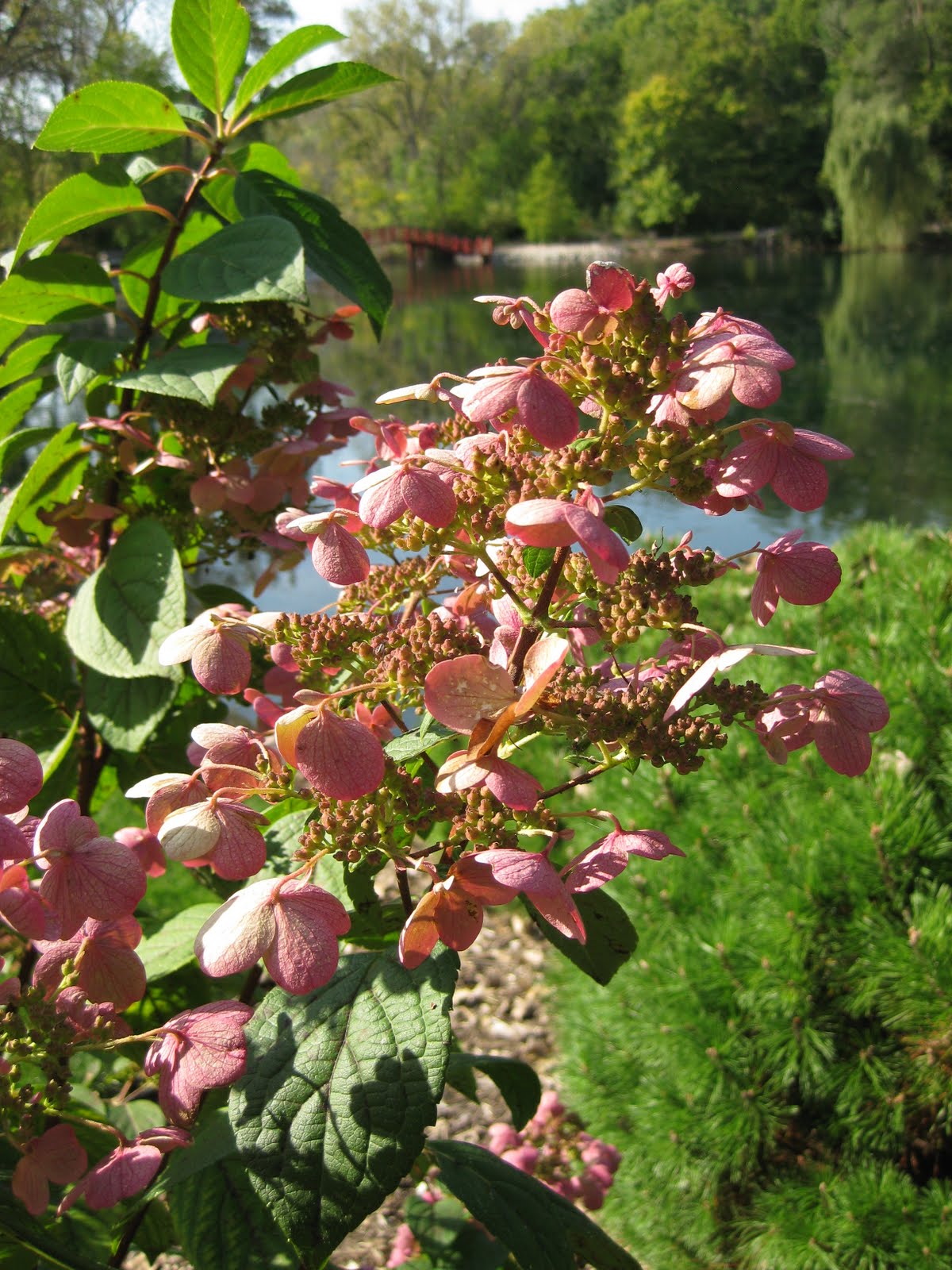 Hydrangea paniculata 'Bulk') that is known for blooming very early (white flowers) which then means we have an earlier "pink stage" that is quite engaging right now. We have six varieties of panicled hydrangeas (