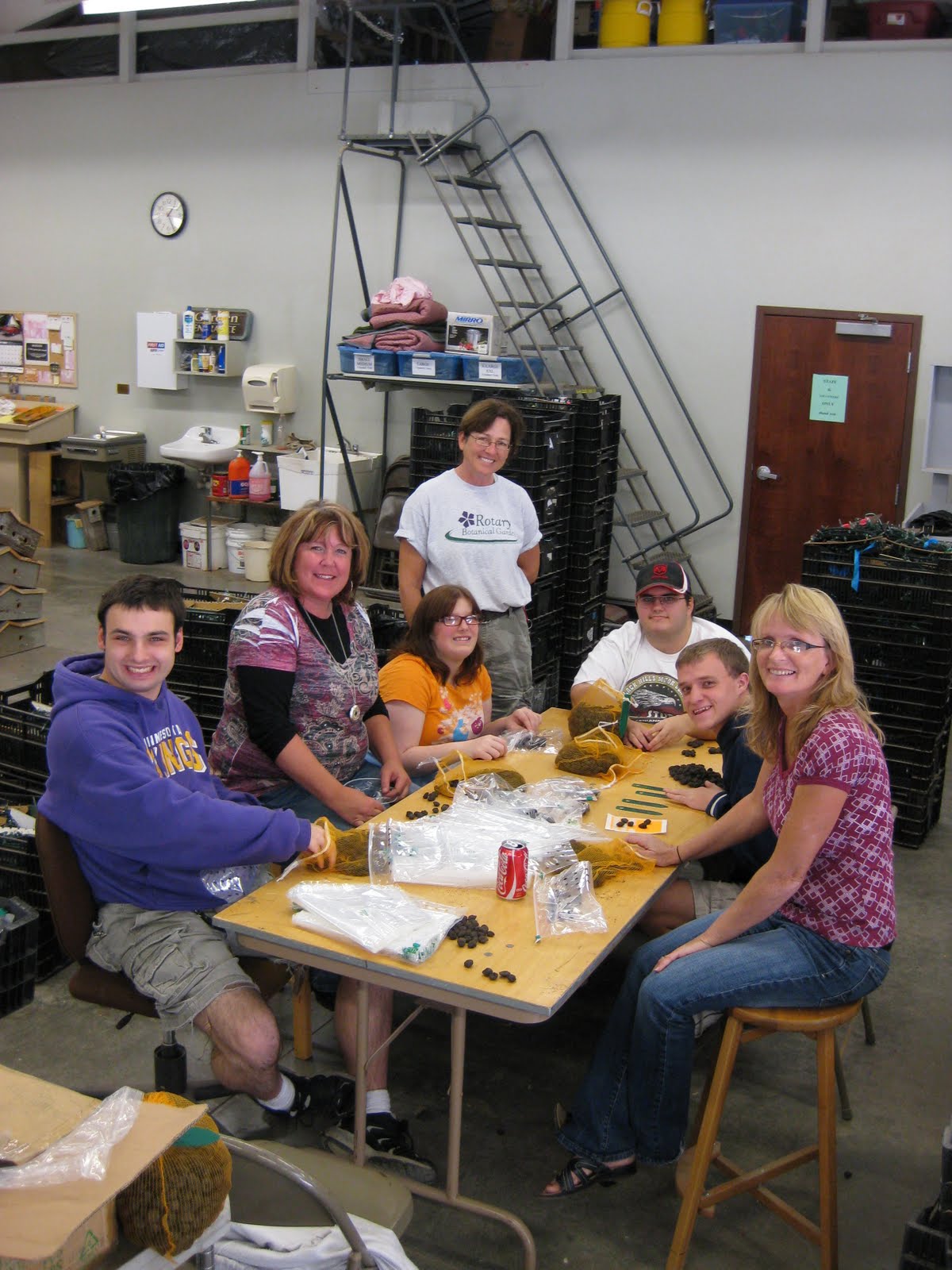 We had another crazy Thursday today with lots of staff and a substantial group of volunteers. Larry worked on running irrigation, helping the carpenters and doing odds and ends. Janice helped facili