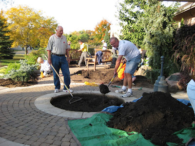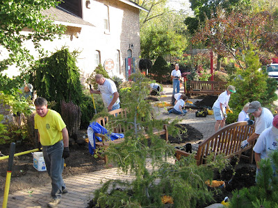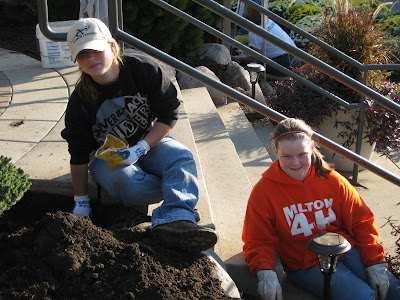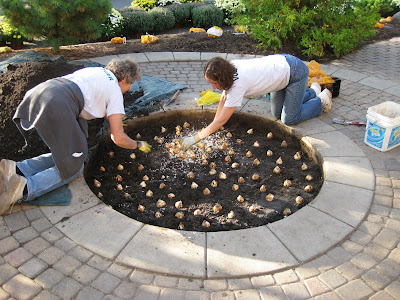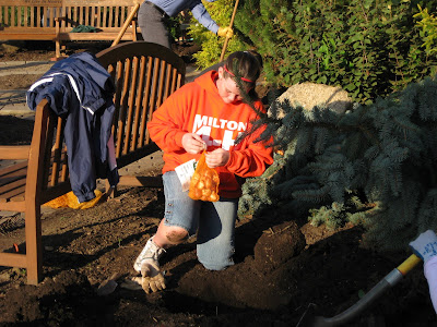 We had an awesome turnout of volunteers today for our annual bulb planting extravaganza. At one point, I counted 22 volunteers and we had other volunteers working at our compost sale and helping tidy up the gardens before our weddings. It was nice to see some kids help out and we saw some new faces as well. Special thanks to Larry, Bill, Janice, Marianne and Big John for helping facilitate the day. Below are some of the highlights of the morning which tallied up over 8,000 bulbs in the ground in front of our visitors center. Next spring will feature blue windlfower (