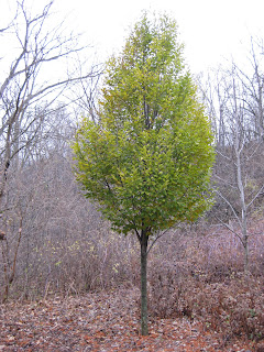Carpinus betulus 'Fastigiata') just getting some chartreusy fall color. I've seen these used in very formal settings and their uniformity is quite impressive. Below is the fall color of the Kousa dogwood (
