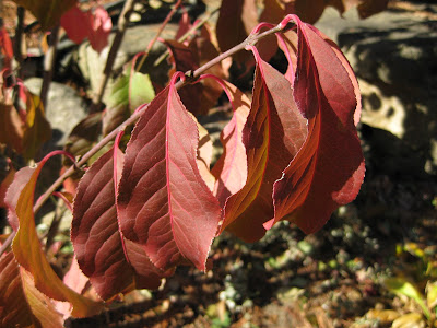 Euonymus hamiltonianus 'October Fire') near the waterfall in the Japanese garden. This specimen will ultimately get well over 12' tall but has superior fall color and interesting fruits.
