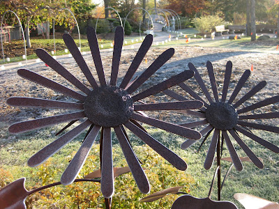 Above is our sunflower sculpture out in the gardens with a nice frosty edge. We have about a dozen of these sculptures around the gardens, most of which were created by Brady Lueck, a local sculptor and artist. Despite the small crew today, it was busy around the gardens. Kay was here and haule