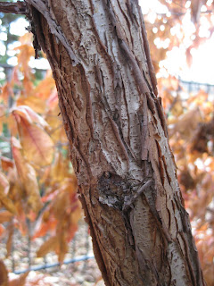 www.horticulture.wisc.edu/allencentennialgardens/) on the UW-Madison Campus. Ed Lyon, Director of ACG, showed me this planter back in July and I was impressed with how sturdy and functional it appeared. To the left, I'm featuring more ornamental bark. This is the bark of the three-flower maple (