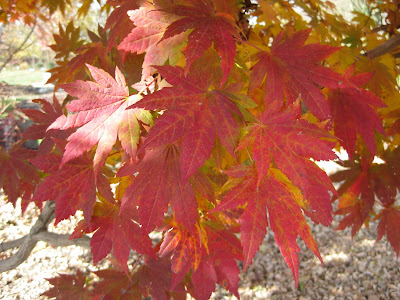 Liquidambar styraciflua) near our arboretum. I look forward to this display every year as just about every fall color is represented at some point in time during the fall leaf transition. The bottom photo is another shot of fall color for the recently featured Korean maple (
