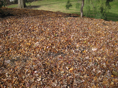 arundinacea 'Skyracer') that while achieving great height (7' or so), has a "see thru" look that makes it ideal as a specimen as it allows views thru the plant itself. While most of the leaf blades are in the bottom third of the plant, it's important to know that this perennial grass for full sun has no winter interest as it will flatten quickly with even modest snow cover. Below are just a fraction of the shredded leaves that we are collecting with our mowers and placing over planting beds to improve the soil for next year. We hope to rototill these in lightly or cover them with a light layer of compost before winds move the mulch elsewhere.