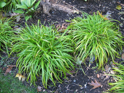Luzula sylvatica 'Solar Flair'). This grass (actually a grass relative) provides a nice beacon of gold in a shady spot. We have this at RBG and I saw it on many of my trips. This tough perennial is drought tolerant and will adapt to a wide range of soils. It definitely needs some shade as it can get "crispy" with too much sun.