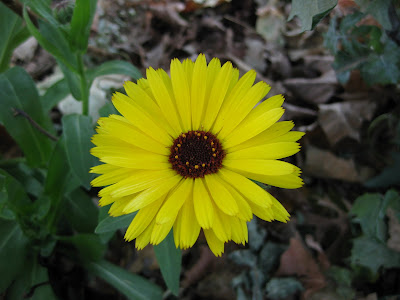 Lobularia maritima) which is a frost-tolerant annual that not only continues to bloom late in the full sun garden but reseeds nicely. I remember as a kid, watching my mom rip out her expanses of alyssum and shake the seeds off to re-populate the same area for the following year. This has been a 30 year routine and I'm sure she's never had to buy seed or plants of this fragrant groundcover. Look for a new hybrid variety called 'Snow Princess' that has lots of merit in the border and/or container. The next image is another "cool season" annual called pot marigold (