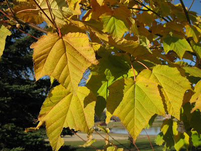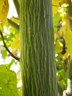 Acer tegmentosum 'White Tigress'). To the right is the ornamental bark of this smaller maple (20' tall at maturity) that does well in full or part sun. There is some debate about the parentage of this maple but regardless, it is a great specimen. The nicest (and biggest) specimen that I've seen is up at Olbrich Botanical Gardens (Madison, WI) where the tree is located in an inner courtyard of their visitor's center but can be seen from the library. Below is the fall color of this neat, and fast growing, maple.