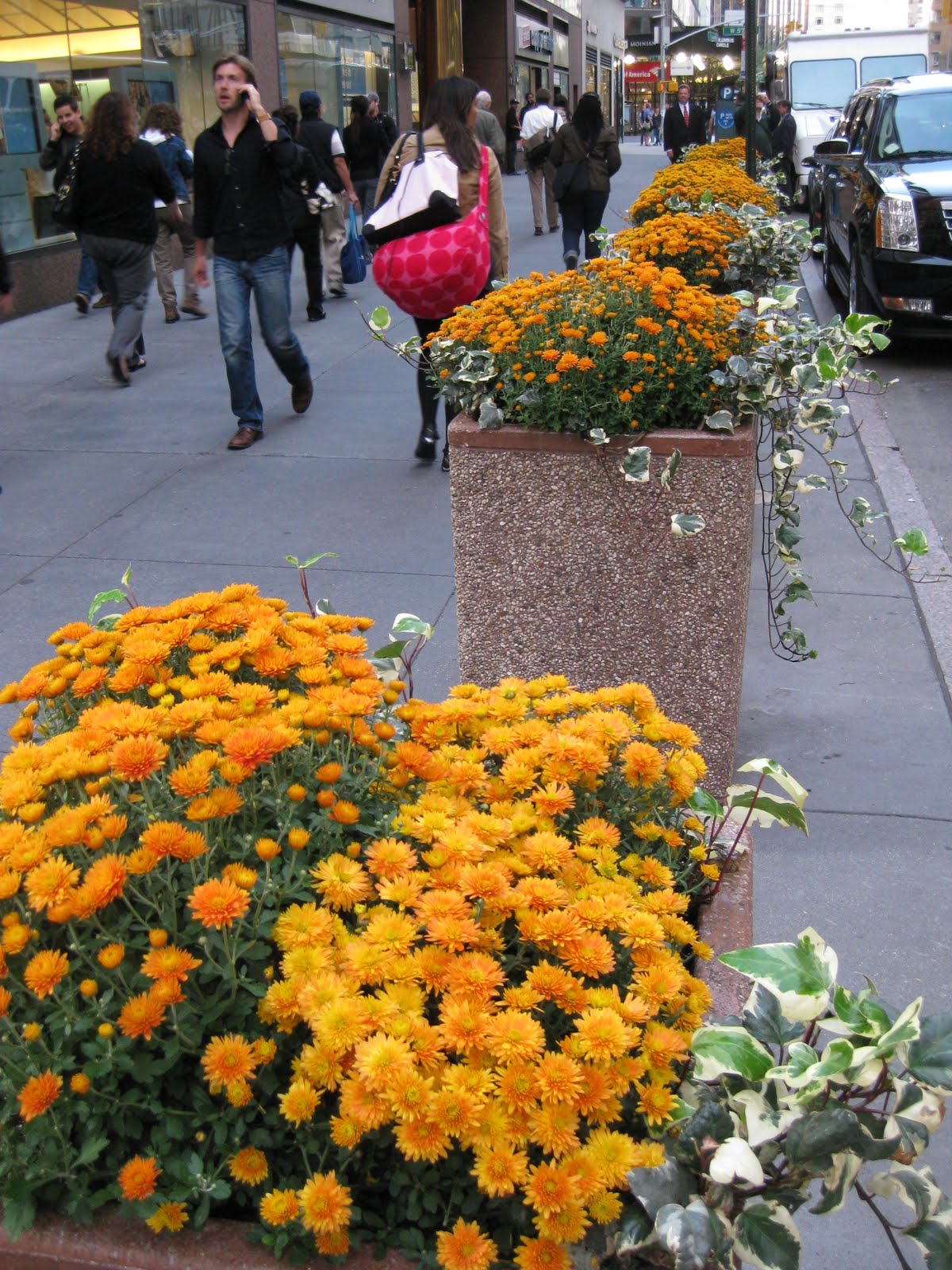 All the pictures in this blog were taken in New York City back in mid October. With my limited blogging on the botanic gardens and parks that I saw there (New York Botanical Garden, Brooklyn Botanical Garden, Central Park and High Line Park) I've been wanting to mention the other greenery that I saw that I'm sure was very important to residents of the city. I could never live in a big city like New York, Chicago, Los Angeles, etc. for many reasons. I'm a bit claustrophobic to start with and need "my space". I also need to see green space, early and often. I can understand the appeal of a large urban location in terms of culture, cuisine, etc. but while I like to visit, I'm also happy to to get home! My travels this year to the three large cities mentioned above were wonderful in regards to seeing botanic gardens and larger open spaces in the cities but also depressing to see the expanse of hardscaping, buildings, roads, noise, congestion, etc. and due to that urban density, the lack of vegetation. There are monumental efforts in most urban settings, particularly those that I saw, to maintain parks and at least minimal landscaping to soften those spaces and give some glimpse of nature, albeit on a micro-scale when you think of populations in the many millions. I'm sure some people are ok with that limitation but many are not. Research has shown the benefits of seeing and experiencing nature and how it affects stress, health and the the general enjoyment of life. I saw many children in New York City heading to school on the subway or walking to school and I couldn't help but think of that "nature deficit" and "disconnect" that is understandably occurring. I'm not judging those in urban centers as they have experiences beyond what many of us would ever see as well. However, it was reassuring to see some of the little pockets of color (shown in this blog), whether in containers, planters, potted trees, rooftop gardens, etc. It was nice to see the attempt at nature in a very hostile environment with severe limitations on plant growth. Think of how many people in NYC see each of the containers and planting situations shown below on a daily basis! The value of those containers and planting "smidges" is without measure. Perhaps my "last stage in life" garden will be containers on the deck or patio of my assisted living apartment (I haven't convinced either daughter to care for me in my later years! :) ). And I'm ok with that. Just give me some plants. We ALL need them.