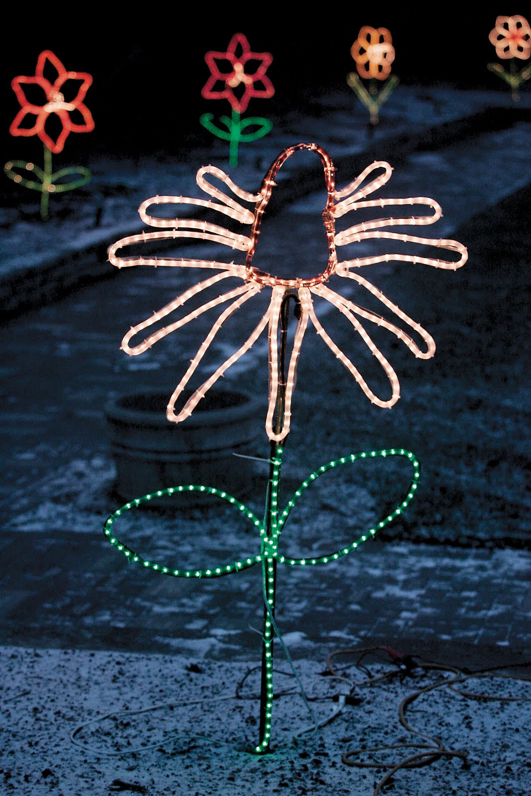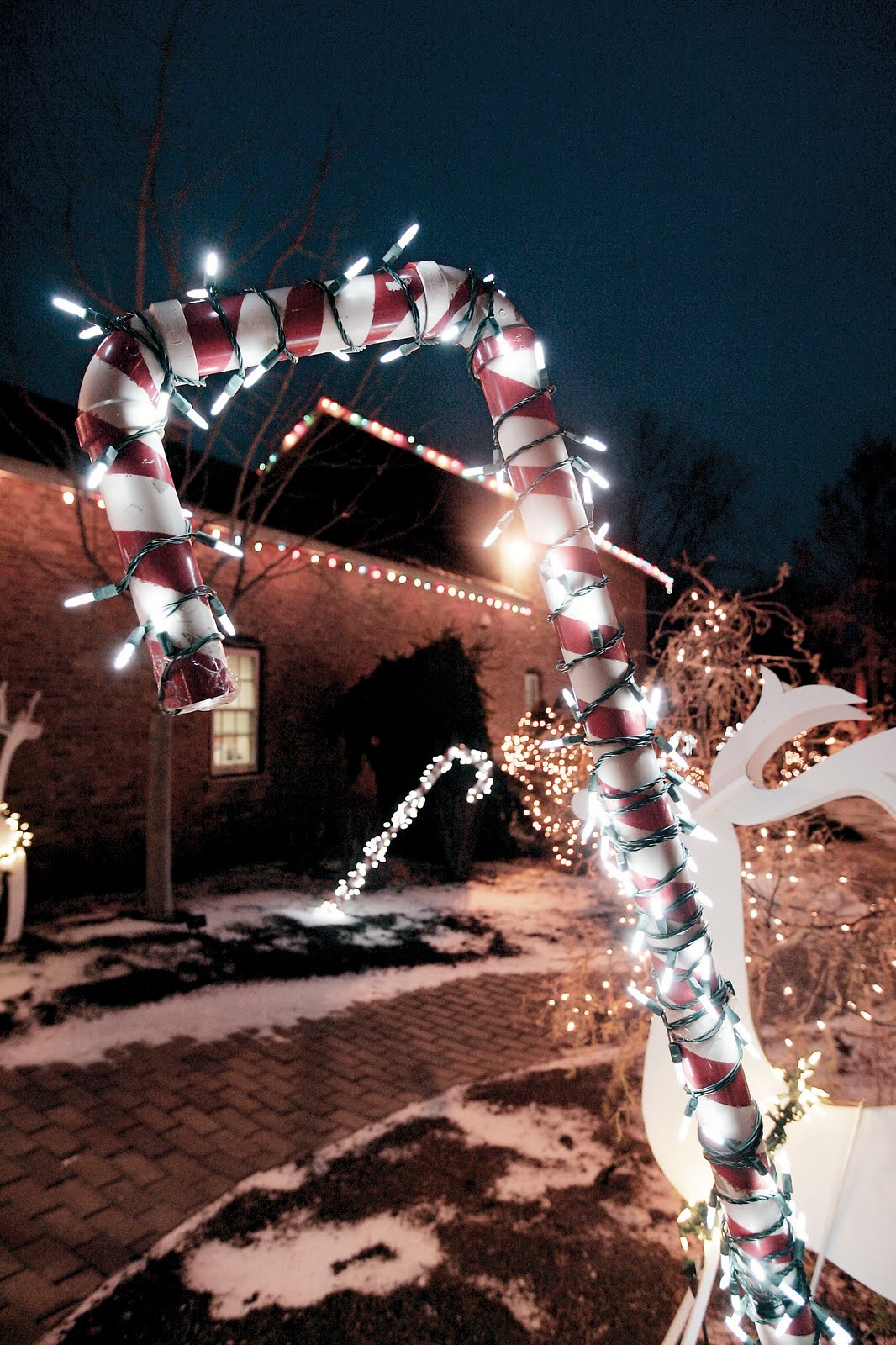 0 custom displays that these gentlemen made for us with rebar frames and rope lighting. The candy cane to the right is made with pvc piping. In the past, we have rotated these displays and only put out 1/2 to 2/3 of them each year in different locations. Well, this year, Randy fixed all those in need of repair and we have almost 90% of them out in the gardens this year. LP Tree Service has been involved for over 12 years with their hanging of icicle lights from their bucket trucks ("cherry pickers"). The facts/figures that we have listed in our press releases include 300,000 lights, 100 displays, 40 decorated obelisks, 150 decorated white pine trees, 200 dangling icicles, 2,000 milk jug luminaries and 6 miles of extension cords. I think these figures are fairly accurate for 2010 although to be honest, we didn't think the show would be this extensive when we started setting it up in October. However, it gained a life of its own and coupled with a warm November, became our biggest and best. Most visitors to the show don't realize that we start testing lights in August on rainy days and by early October, are ready to start setting out lights. Marianne and Janice are our testing and repair experts. Janice decorated all the obelisks with lights too. This is double duty for obelisks that had function out in the gardens during the growing season as well. Marianne is responsible for the luminaries and with help from Jenny each year, gets them set out and ready to go. She also has become a huge help for me in regards to running cords. Larry sets up the "pavilion" area and arches and helps with a lot of the signage, blockades and troubleshooting. Larry and I split the nights of the show so at least one of us is around to deal with any problems. Barring wet weather, we should be in good shape this year as Tom C. really got our "electrical affairs" in order. Big John helped too this year but we keep Little Jerry as a 100% gardener so some gardening is getting done. Kay and Robin helped free up our time this fall with their top notch fall clean-up efforts. However, I can't say enough about Marv and Terry who start putting out lights and displays earlier than anyone else and put in a SOLID six weeks getting things ready to go. The guys decorate all the hedges and put up most of the icicle lights. They secure the stakes for all the trees (and secure the trees too!) and this year were given creative license to arrange and place displays. They did a dynamite job as usual. We have been adding about 5,000 LED lights each year (not this year - short on funds...) and they offer the benefits of energy savings and a very bright look. The only drawback I see with these lights is that they don't generate heat which standard lights will do, thereby melting off potentially obscuring snow. The entire show is tested and tweaked multiple times before the show is open and thus far for this display, the show has stayed on nicely.