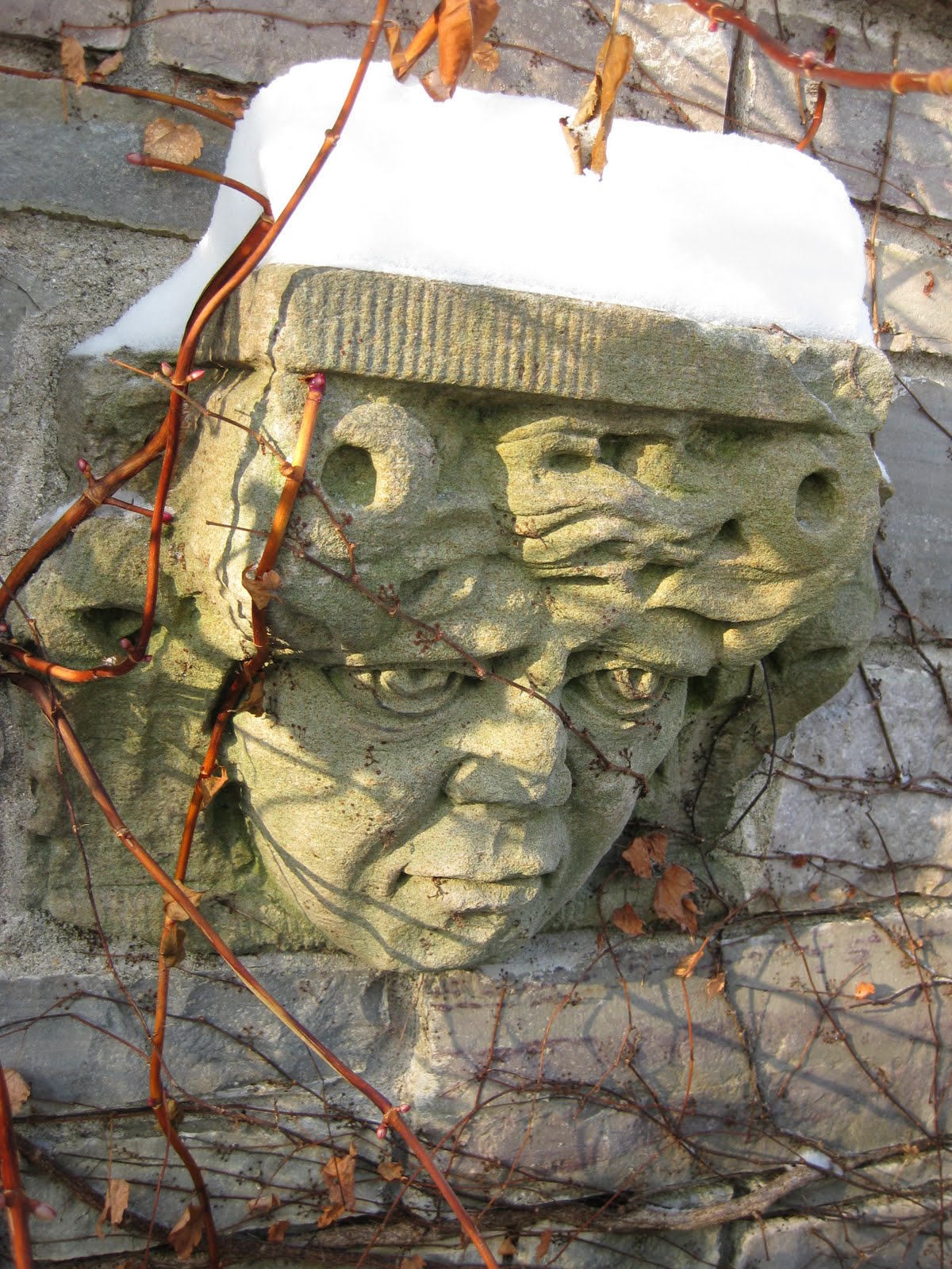 We had about 2" of fluff come down last night which really wasn't much trouble to remove this morning. The sculpture to the left (on reception garden wall facing the sunken garden) looks real happy about the weather! Bill and I cleared the snow with blowers and shovels in about 2 hours in preparations for a rental this evening that will have access to the Holiday Lights Show. Bill is a huge help