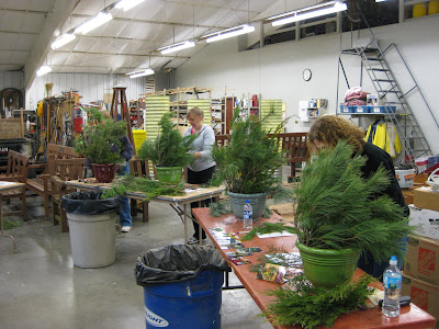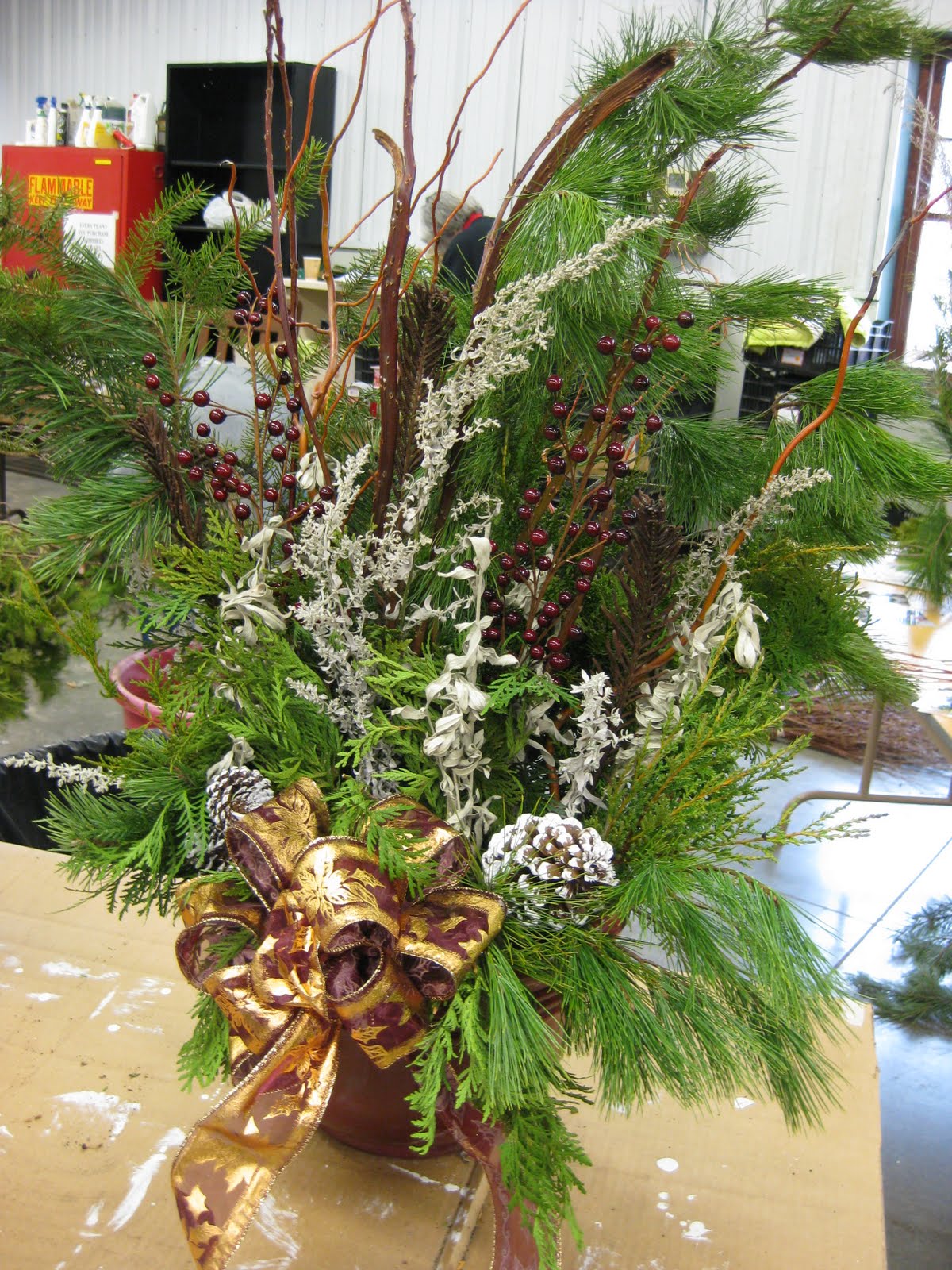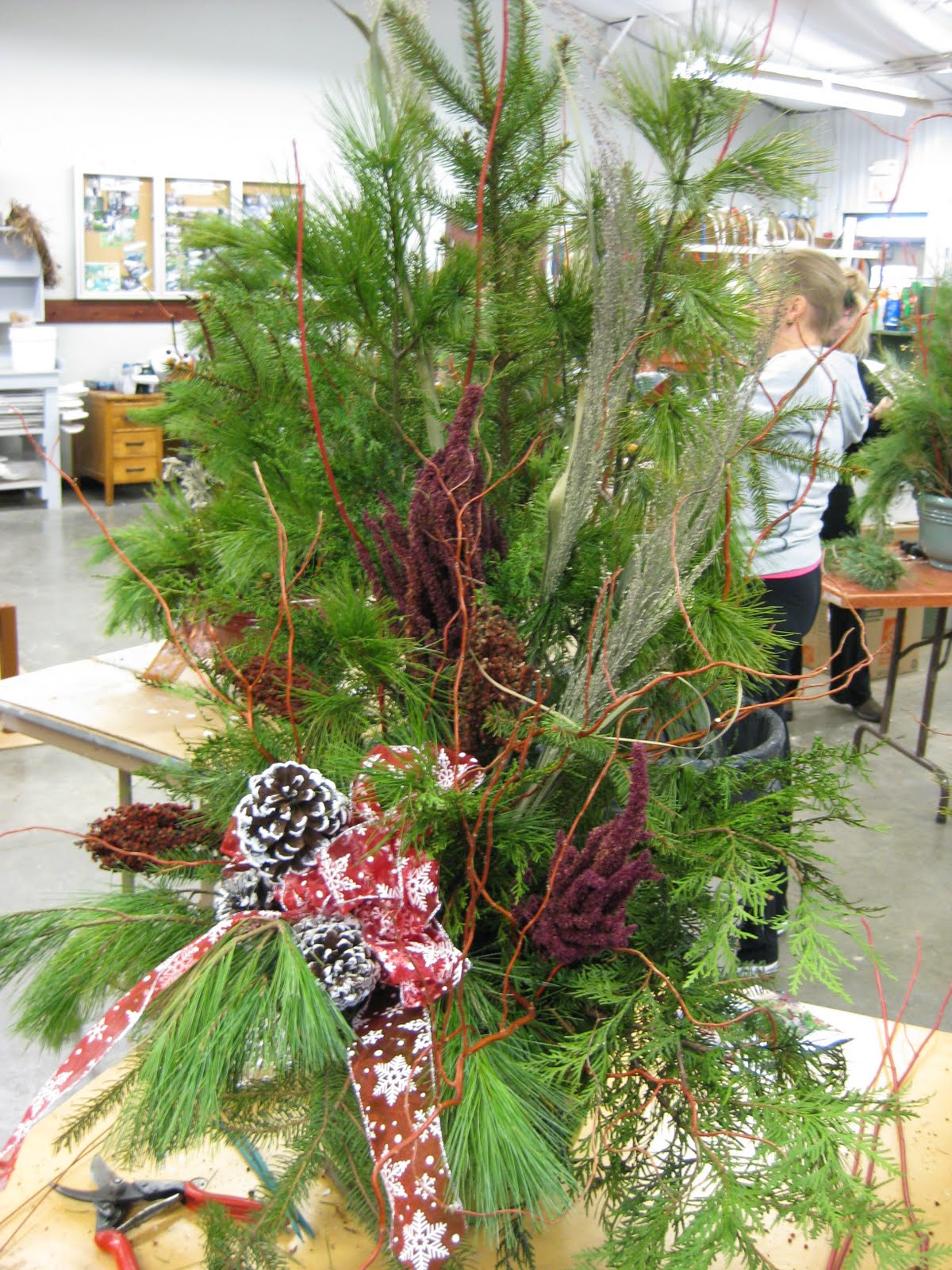 and Nancy are Master Gardeners and facilitated this workshop last year as well. Becky also has her own landscape maintenance business and has no shortage of work. The ladies had a wide range of materials to utilize for their containers including colorful stems, greens (pine, spruce and arbor