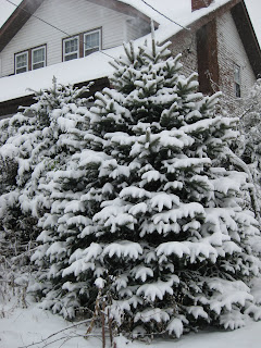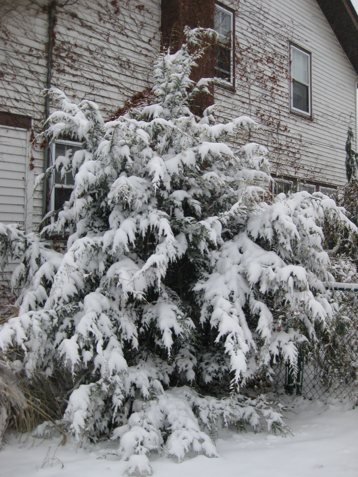 ughter was outside immediately to enjoy it. When is that "transition" from "Oh! Look at the pretty snow. I'm heading out to play" to "UGH! No I have to get the shovel and clear this stuff off."? I think it happened for me early when my brothers and I were given our own shovels at age 7 to clear our long (and wide) driveway. Snowblowers were a luxury back then but I've never minded shoveling even though we have a snowblower. I'm amazed by those that fire up the snowblower to pollute the environment to clear off 1" of fluffy snow! Nice shot to the left of a small white spruce (