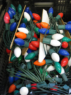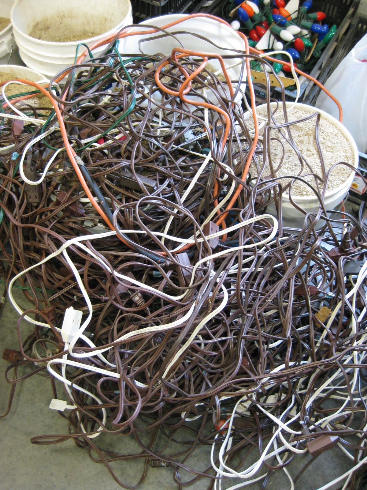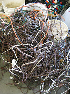 evening seminars for 2011. Many of these I've mentioned in very recent blog postings. I'm also continuing to get seed orders together and we hope to have all seed ordered by the end of next week if possible. We'll need to finalize our collection and plant sale needs first but are on track thus far. These images show just some of the items coming back inside from the gardens. Many of the cords and lights need to be thawed out before they can be coiled up and stored so we have a 3 step process of retrieval/hauling, thawing and finally the processing for storage. We should