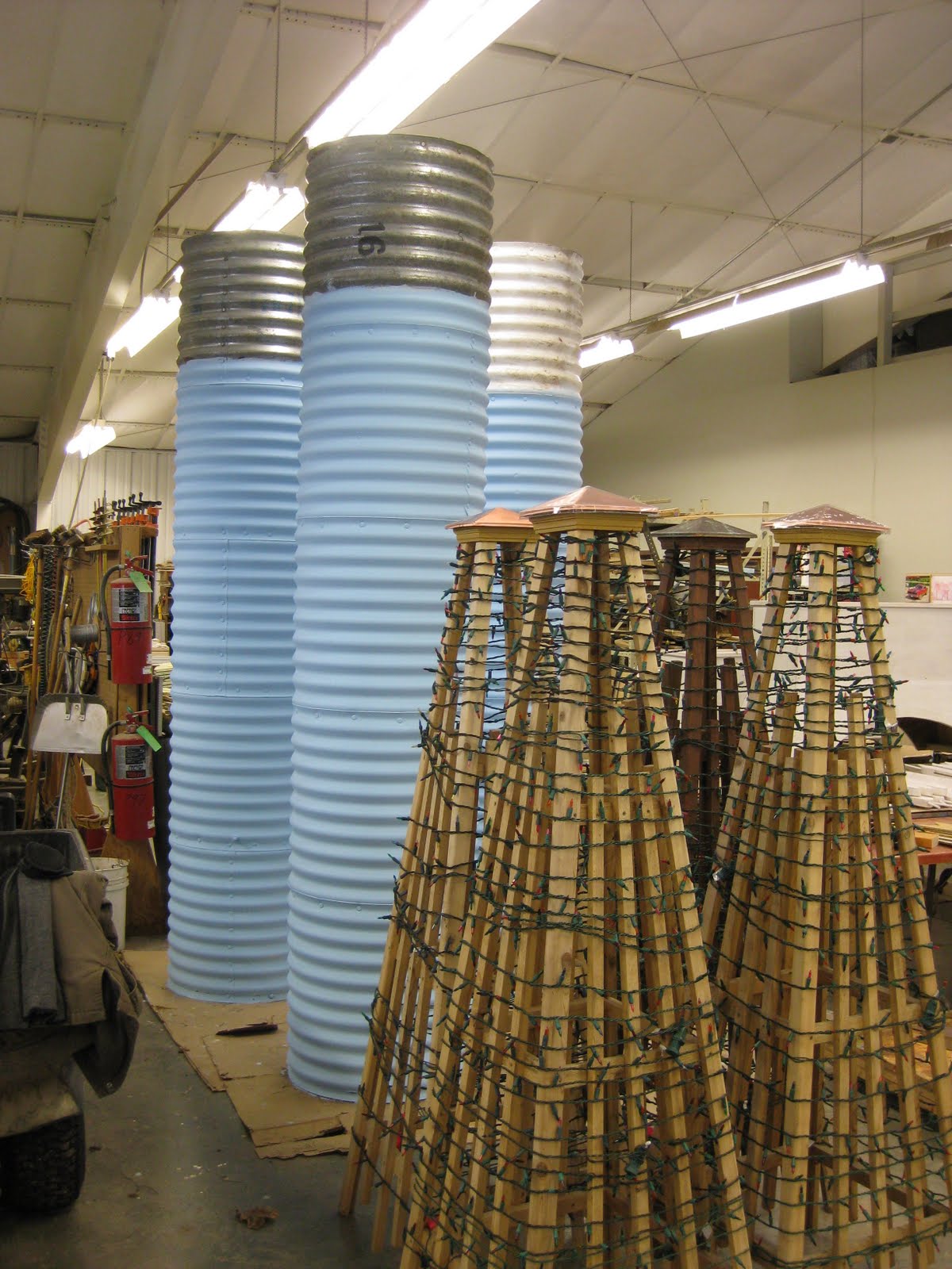 have a good turnout of volunteers tomorrow although I'm working from home with the intent of finishing a landscape design for our new "North Point Garden". This is the space where the carpenters built that nice structure and the rock retaining wall was installed along the shoreline. We received a generous contribution (anonymous) to finish that garden space and will sink our teeth in to it this spring.Rose and Urban came in today to put the final coat of "baby blue" on three of the five large culvert planters. I think they look great (as seen below) and of course, the unpainted side will be underground! They'll work on the other two shortly and we'll be resealing and repainting many of the obelisks too as they come back and are undecorated by Dr. Gredler, who was also here today. Larry, Bill, Marv