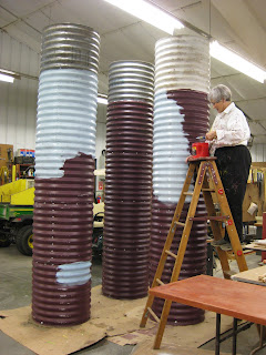 ng in displays and lights. Urban and Dick H. went out to bring in luminary jugs before they get frozen down again while Larry has been out all day wrapping up the luminary light strings. Bill O. was in to also start taking down lights. Rose (to the right) started the color conversion of the big culvert planters (maroon to pastel blue) while the carpenters (Dave, Jim, Bob A. and Vern) continued on their new projects after finishing the butterfly art projects earlier. Marianne did a great job giving the break room a comprehensive cleaning and Janice was in to continue finalizing our vegetable seed orders (for collections and the plant sale). Maury did some running for us and we also saw Big John, Gary, Chuck S., Little Jerry, Mike (Jerry's son) and Ron W (who was helping over in the gift shop). Jenny came in to continue working on our new labeling system and is currently putting in data regarding the fern collection to be followed shortly by the daylily collection. Lots of busy, but exciting days ahead.