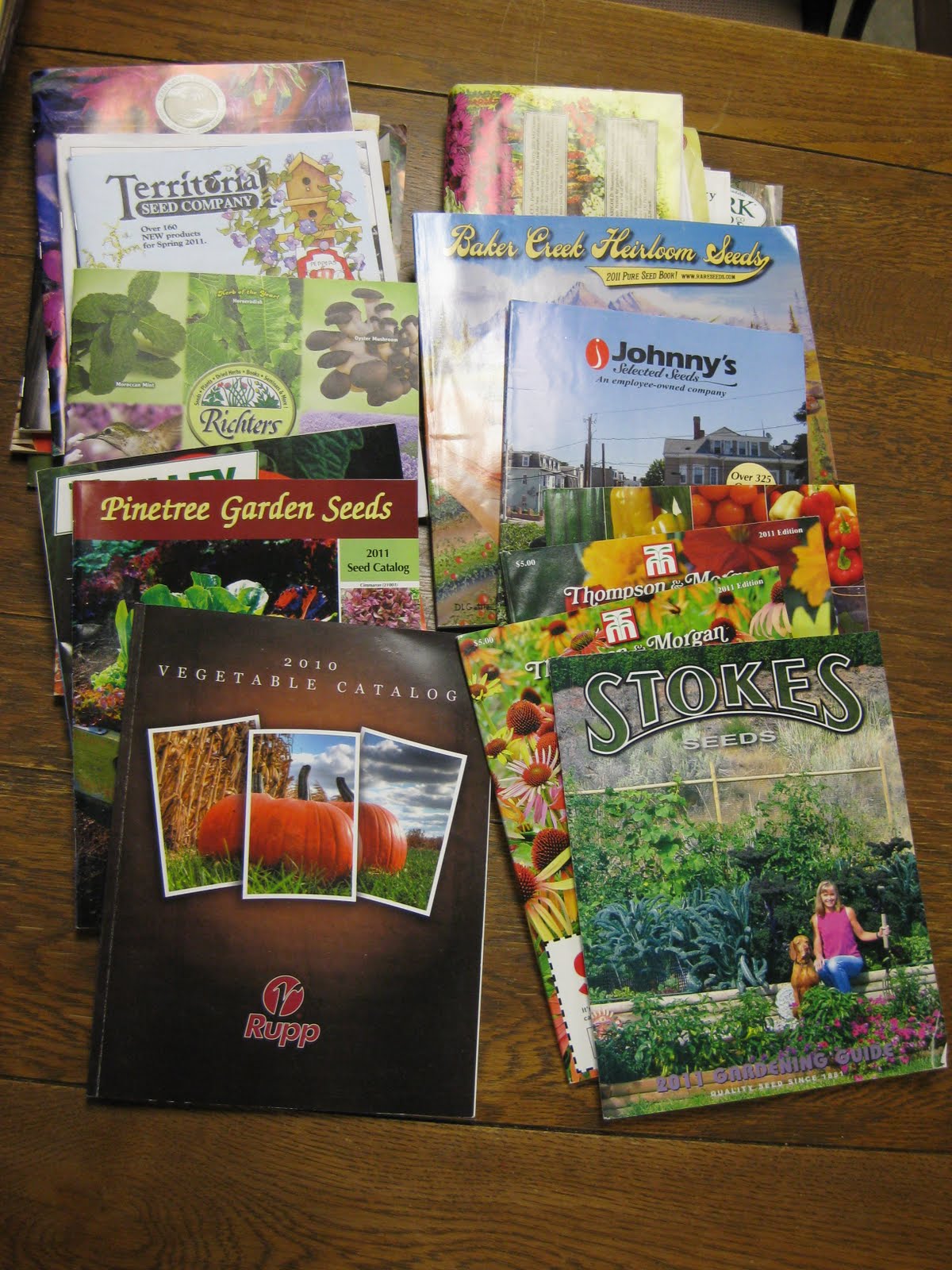 re consumers grow their own vegetables and fit these edibles in to their beds, borders and containers. Look for any book by Rosalind Creasy and you've got some good reading. Speaking of good reading, the seed catalogs look good this year and while I cheated a bit over my vacation and perused about 30 catalogs, I now go thru each one in detail and look for specific varieties for our collections and the spring plant sale. While we have no greenhouses at RBG, we have four generous growers/friends that start all our seeds. Janice has been scouring the catalogs for veggies as well as the squash for our 2011 display. I love going thru the seed catalogs and that "kid in a candy store" adage is entirely appropriate. To the left are just a smidge of the "to be read and ordered from" pile...Marv and Terry went out today and started bringing in all the obelisks for "un-decoration" by Dr. Gredler. Access was as easy as it has ever been after the show and we'll take advantage of this week for sure. Some years we wait until February and March to bri
