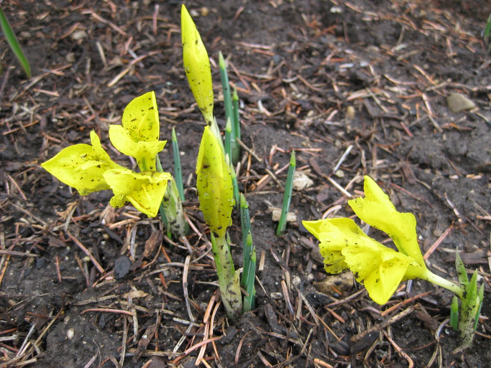 The Danford irises (Iris danfordiae) are just starting to bloom in time for another battering from incoming rains. Portions of this past weekend were quite damp and it sounds like we'll have more of the same this week. This upcoming weekend is our big spring symposium (March 26th) and we are looking forward to a full crowd (180 attendees). I met with Big John and Polly today regarding set-up and took care of some other arrangements. We still have people calling to see if they can get in for this Saturday! Our Friday night "Meet & Greet" still has some openings (call me for more details) and it will be nice to relax with the speakers (Doreen, Ed and Jeff) prior to the chaos. Doreen is also doing a presentation on "Heirloom Vegetables" that evening. Janice, Marianne, Kay and our new Education Coordinator, Kris worked on preparing our symposium attendee bags this morning (see below). Kris' son Roman was a great help too and it's nice that we're so organized thus far (thanks to Janice, Marianne and Polly!).