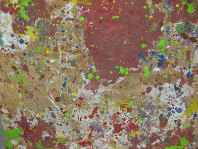 Nice shot above from Barb C. of skunk cabbage (Symplocarpus foetidus) poking up thru wetland soils with alien-like blossoms. She took this shot recently on one of her hikes. This is one of the first blooms to be seen in spring and what's interesting is that this plant will push up thru snow and ice by creating heat that is roughly 20 degrees F higher than surrounding air temperatures, thereby melting its way upwards. I'm off to Michigan today but wanted to share some of Dr. Gredler's modern art below. These are both horizontal, plywood platforms (with rolling casters) that he'll place the obelisks on for repainting and be able to move and spin them as needed. The colors, of course, allude to many of our 2011 themes! These may be worth something someday....