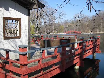 Marv and Terry braved the weather and installed another 20 or so of the butterfly art projects around the gardens. I flagged some suggested locations and the guys did a nice job of installation. We had to consider proper support for some of the heavier ones and because many of these have equally nice "back sides", we're trying to position them for maximum visibility. I think the guys will have another seven or so to go next week. Big John was here for a couple of hours and finished his excavation project which involved creating a new planting bed behind one of benches that has one of the best views across the water. Marianne ran the tree sale with prowess and efficiency and had time to do her cutting display as well. Janice helped orchestrate the Earth Day set-up and worked on processing our new gardening books for the reference library. Marianne had some of our surplus tree sale volunteers working on smaller, indoor projects and we had many Golden K members and RBG volunteers assisting at the Horticulture Center. The only intent of the three pictures below is to show you how nice yesterday was in the gardens....Hopefully we'll see a quick return to similar weather!