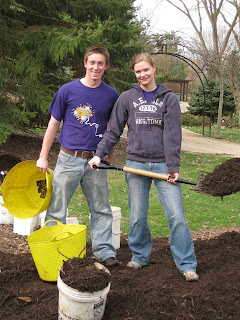 ardens, including the students from Oakhill Christian School that were here with Mrs. Brinkman. These students, many of whom I recognized, have come to volunteer out in the gardens the past couple of springs and autumns. They are hard working and really were troopers with the cold, biting wind. Don't let the t-shirts fool you, it was COLD. They did a nice job of spreading a fresh, 1" layer of