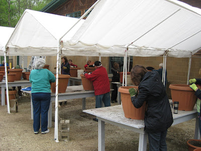 Last night was our volunteer potluck and I though it went very well. We had well over 100 attendees and both Kelli and Lori had some great comments for the group. The food was great and it was nice to see not only so many volunteers, but volunteers meeting others that they may not normally encounter. It was a cozy, "family feel" and Sue M. took a group picture of the gang out in the English cottage garden. I think this is the first picture of its kind with so many volunteers in one place. This was only about 1/4 of our overall volunteers and many were missed due to other commitments, etc. I did my presentation which included some historical shots of the gardens in development and some of our earlier volunteers that were so instrumental in helping form and shape the gardens. I wasn't boo'ed off the stage so that's always good. Crazy days ahead.