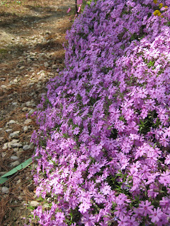 m and our tree peonies (Paeonia suffriticosa) are all strutting their stuff. Well, on a day like this, we tear in to indoor projects and actually went on three plant runs. Marv and Terry picked up a load from Ahren's Acres (Brodhead) with John and I doing the next run. John went back after lunch to pick up the last of our plants from them and we appreciate all that the crew at Ahren's Acres (Audra, Natalie, Linda, Richard, etc.) does for us. We have one plant run tomorrow and will finish our "pick-ups" next week. To the right is some creeping phlox (Phlox subulata 'Emerald Pink') that I saw at The Flower Factory yesterday. Creeping phlox sure is nice for a couple weeks in May before it fades. To the left is a cool "bottle tree" sculpture that was also at the nursery. You can't go wrong with plenty of blue in the garden.