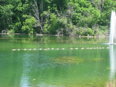 The "dotted line" in the image above is a single file row of Canadian geese (23) heading thru the pond near the alpine gar
