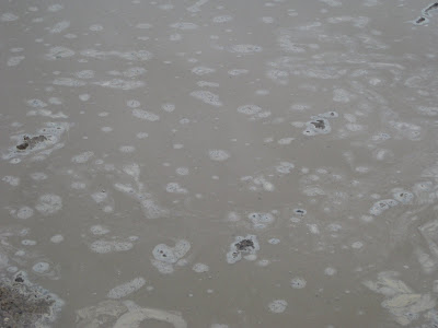 Not the prettiest picture above but this is one of the many puddles around the gardens today with the rain coming down nicely overnight (and pounding down again around 2 pm). It has been overcast all day with the threat of rain throughout the evening. I've been looking at the radar all day and am watching the storm swing north of us although I wouldn't mind a bit more moisture to carry us thru the weekend. Despite the wetness, we all were outside today and everyone did a dynamite job with their projects. We actually planted nothing but accomplished much! The contractors were also here continuing their work on the new lower pool in the Japanese garden. Below is the 'Seven Sisters' rose at my home that earned its name for the vivid progression of color from fresh to spent blooms. The bummer is that it only blooms for about three weeks in June, then it gets about 12' tall and drapes over my driveway and will frequently draw blood!