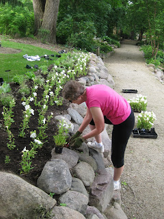 helped us collect our debris at the end of the morning. Dr. Gredler was in briefly to tidy up some lawns and we also saw Dr. Yahr, Hal, Doris, Bob K., Mary W. and many others. It was a very successful day and we had a great pace with the intent of getting out of the gazebo garden (where we were planting) prior to an early wedding (11:30 am). Marv and Marianne played some "catch up" and planted flats in six areas that were left out in various areas from previous planting projects the week prior. Sue and Kelley were also in to plant their portion of the shade garden with annuals and some hostas. To the left is one of the showy mulleins (