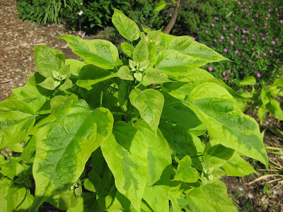 ariegation and "lime green" appearance will turn green within a month or so. I've always liked catalpas and we have many at the gardens. Dr. Gredler was in to do some minor mowing but was also very helpful in setting ou