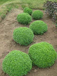 Ocimum basilicum) called 'Aristotle'. Forming a small, uniform mound, this basil is also good in a container or windowbox and is featured at RBG too. To the right is Russian statice (