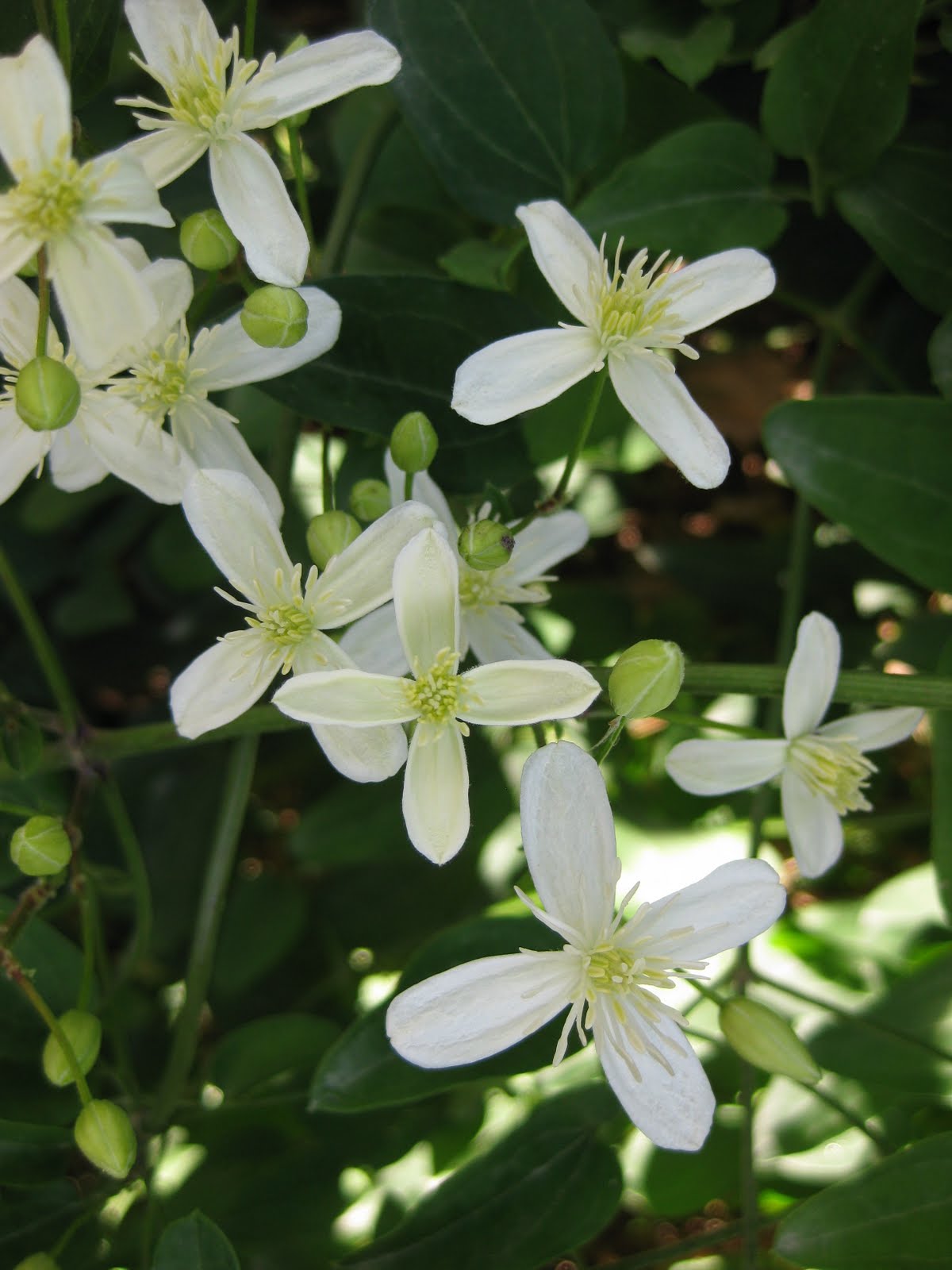 Clematis terniflora) blooms out near the pergola. In about three weeks, those vines will be at peak and will provide a wide radius of divine, sweet scent. Further below is a shot of the plant sale with our early morning helpers.