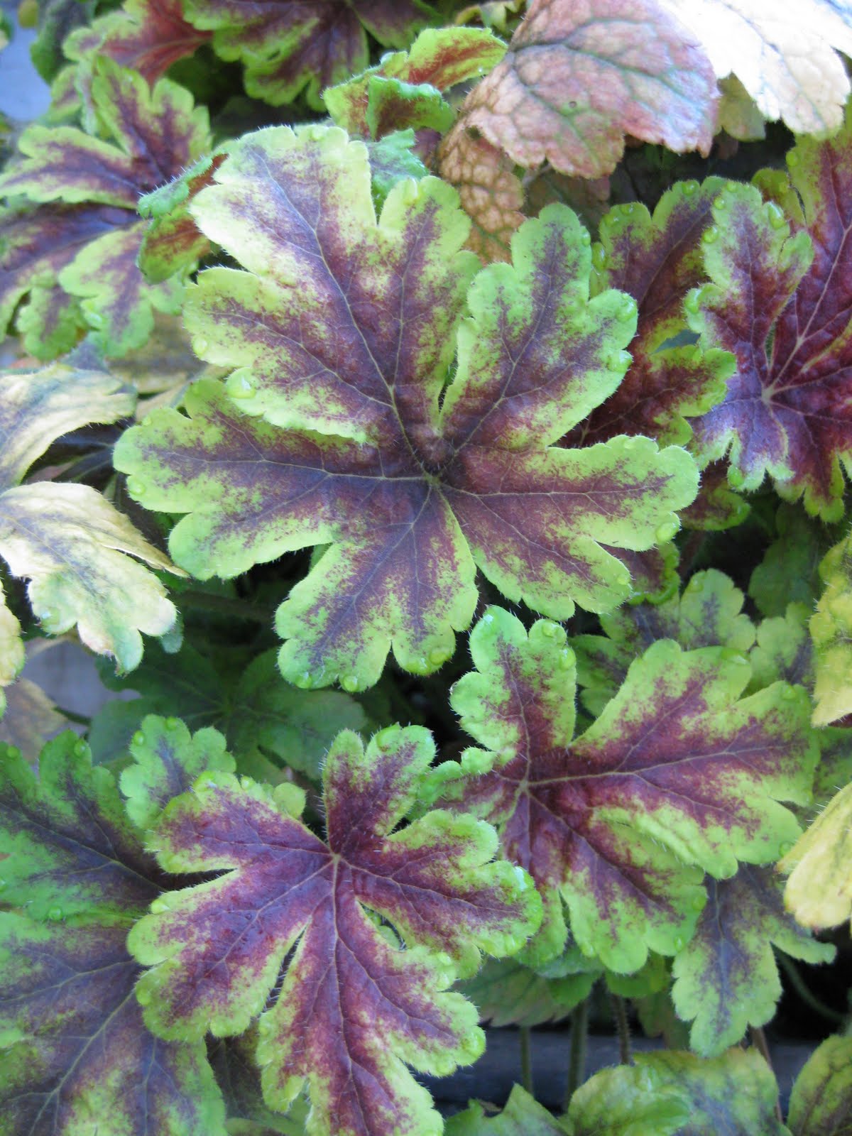 Heucherella) that we have both out in the gardens and in the plant sale. This shot was taken in the plant sale today. That foliage is dynamite and the lighter margins are actually a nice gold