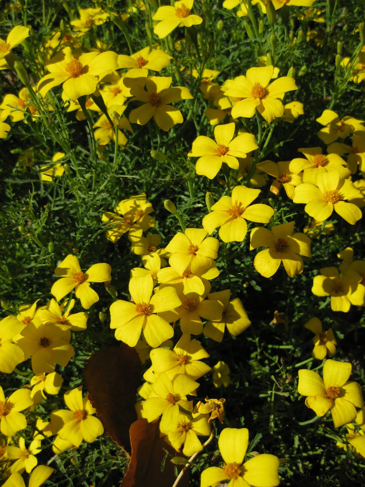 Tagetes tenuifolia 'Lulu') that weathered the light frost last night and are still looking vivid (at RBG, under the 'Dialogue' sculpture).