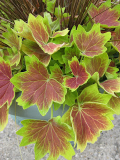Beta vulgaris) still looking good in my deck planter, continued blooms of a hardy chrysanthemum ('Single Apricot'), neat foliage on my 'Vancouver Centennial' fancy-leaved geranium (