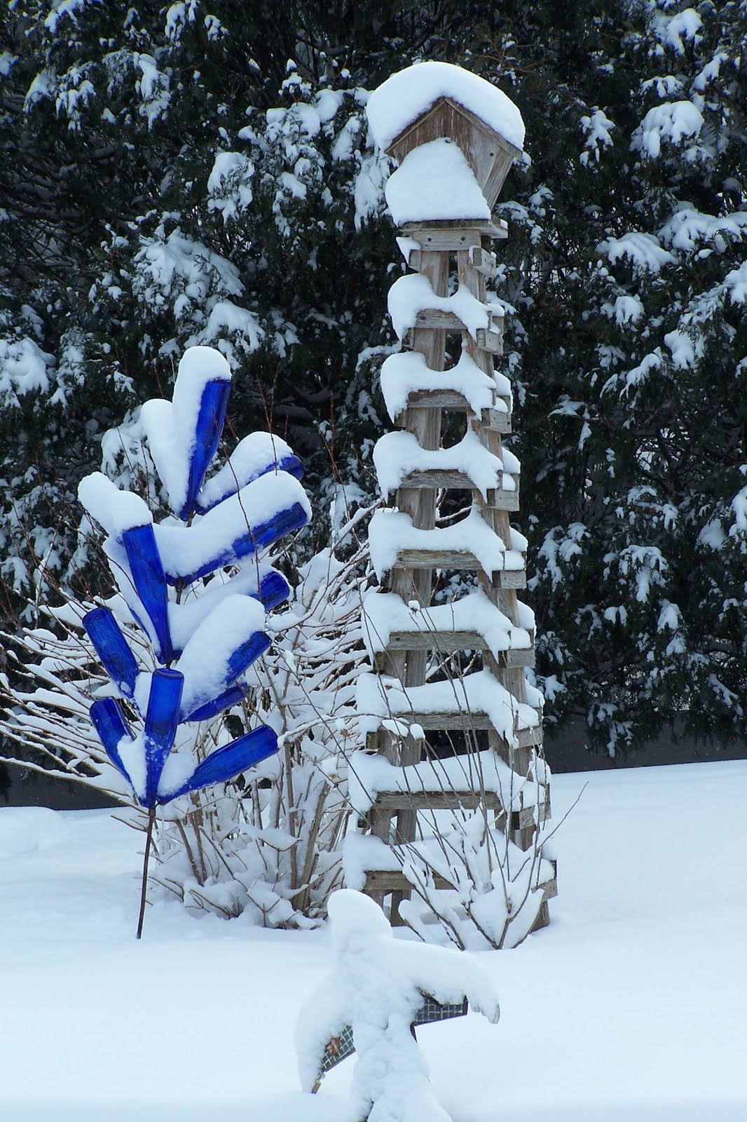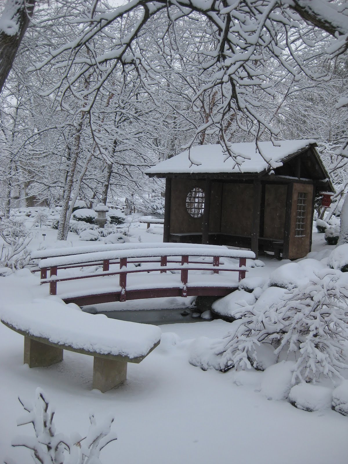 Our promised couple inches of snow over night ended up being 6-7" of the wet stuff. The gardens were sure beautiful this morning though. In between my earlier shoveling efforts this mo