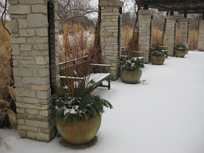 Not much time to type as the EXPO is starting! We had more snow than expected today and it was a bit dicey for travel. Big John and I got up here without incident and got the booth set-up quickly (see above). Some of the shots below are also from the EXPO. John and I had a good lunch and I then shot over to Olbrich Botanical Gardens here in Madison. I think I was the only one who put footprints on that garden today as it was brutal out there with blowing snow and cold. I got some nice shots though and enjoyed the conservatory. I saw Luba at Olbrich then ran in to many friends at the EXPO (Ed L., Ed, John, Mike M., Annieliese, etc.). I also saw Kyle and Dee from K&W Greenery (Janesville).It's funny how you see the same people each year and it doesn't take long to catch up. Further down is a shot of Ed L. in the booth for the Allen Centennial Gardens. He insisted that I put it in. More later. The herds are approaching....The grass below is the Hakone grass (Hakonechloa macra). This is the green-leaved variety that gets some nice height and I love this winter coloration and structure. Olbrich has some huge specimens and their use of ornamental perennial grasses is second to none. I was surprised that Epping and his grounds crew weren't out in this weather as it wouldn't have slowed us down in Janesville! :)