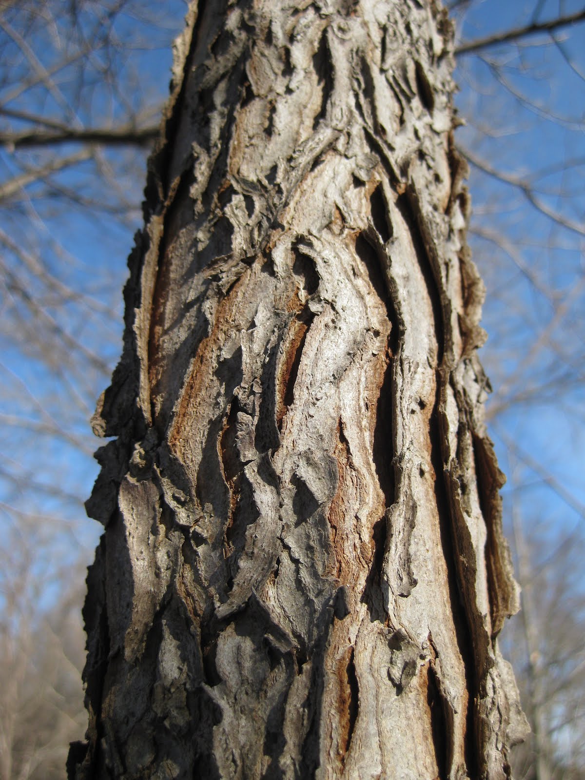 the youth education volunteers from a distance as they were preparing for future program out in the arboretum. Everyone was bundled up but I recognized Shirley, Mary B., Barb and an "unidentifiable" (maybe Bev). To the left is the interesting and ornamental bark of the Kentucky coffeetree (Gymnocladus dioicus).Dr. Gredler was in to paint more obelisks. Luis caught up with creating the next batch of woody plant labels and Gary was over to help him troubleshoot some of the recent problems. Janice was in to work on plant sale