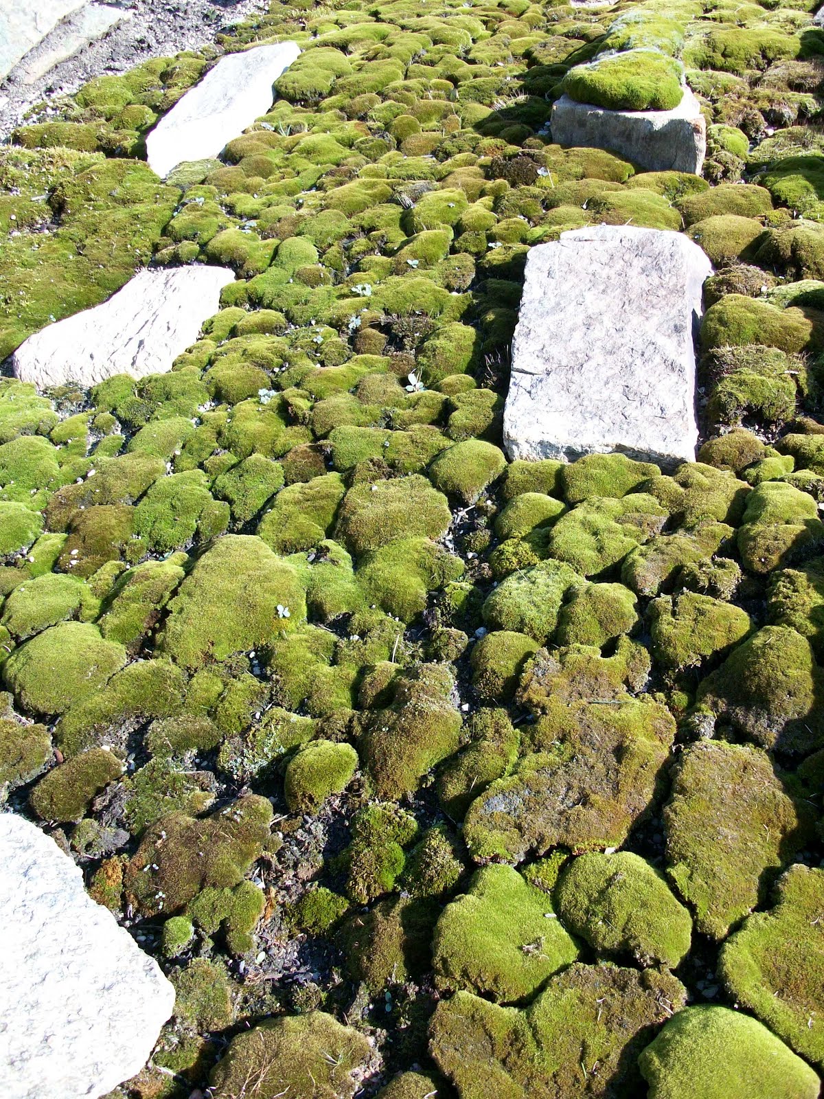 photosynthesize if exposed to direct sunlight. The two horizontal photos above and two below were sent to me today from Dale S. (aka "Mr. Moss") from his garden in Waukesha, WI. Dale has an unbelievable garden (beyond mosses too!) and has collected/incorporated mosses throughout his garden which does have plenty of shade. I met Dale years ago and have visited his garden twice in the past couple of years. His uses of moss would inspire anyone to consider utilizing them more actively as a design element in the garden. He is dabbling with many types of moss (he knows the Latin names too!) and has mosses in a full sun location (including the two moss shots furthOur moss island started over eight years ago with Jenny and Janice transplanting moss patches that we found already existing in the gardens. We did actually mail order some mosses and learned a lot about provenance (place of origin) and how it relates to establishment. All those mosses died quickly. Janice