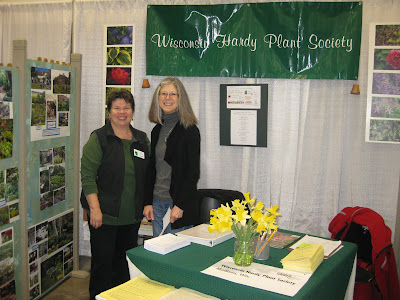 Amanda and I ran the booth this morning and I saw Ed. L. right away. I had a talk on Vertical Gardening at noon which was absolutely packed and I think it went ok based on some of the comments I heard after the presentation. With only 45 minutes allowed per program, I gave just a taste of the many options for vertical gardening. It was nice to see the educational programs so well attended for this event and I think they are just as enticing for event visitors as the vendors and other offerings. WPT has done a nice job with this event and Shelley Ryan, host/producer of The Wisconsin Gardener, is the one that started it all. Yesterday she hosted a panel discussion with Larry Meiller of Garden Talk (WI Public Radio) that took a look back at the 20 years of her show. I was part of the panel and felt out of place with all the VIPs. There was Dr. Brian Hudelson, UW Plant Pathologist, Phil Pelliterri, UW Entomologist and Neil Diboll, President of The Prairie Nursery (Westfield, WI). All of us had been on Shelley's show many times and were asked questions about gardening changes, trends, etc. over the past 20 years. I believe Shelley has filmed 14 times at RBG in the past and I was in all but one of them. It was fun, humourous and really a testament to what Shelley has accomplished with her show. The room was packed and there was no shortage of Shelley fans! Below are two smiling members of the WI Hardy Plant Society which is one of my favorite organizations. Aside from vendors selling products, it was nice to see so many clubs, groups, societies, botanic gardens, etc. also represented.