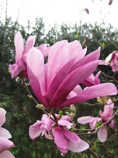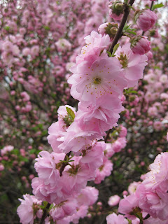 tory. I hope to repeat this presentation in the near future and perhaps invite the general public that I think would find it quite interesting. Thanks to Bill O. and Doug V. for scanning thousands of slides and images for this project and to Marianne for helping me sift, sort, organize and purge as needed! To the above right is the gorgeous bloom of the 'Ricki' magnolia (Magnolia hybrida) near the sunken garden. I have this same variety at home and always look forward to "the show". To the left are the blooms of the double flowering plum (Prunus triloba var. multiplex) near the entrance garden which are always quite fetching when this large shrub peaks. After this finishes bl