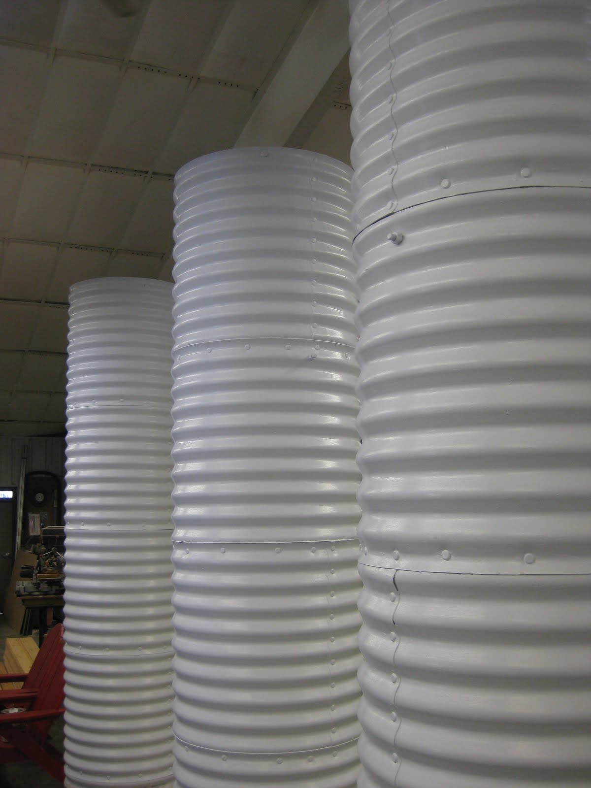 y looks to be a warm one with temperatures approaching 60 degrees F. I don't think we'll have much for snow cover by the end of the week. The blog title refers to the top picture which are some 2" thick by 8" wide "cookies" of ginkgo (Ginkgo biloba) that are being prepared for the education department. Kris received a nice grant that will allow her to develop an educational, interactive, youth backpack program for the gardens. We'll be drying these, sanding them and putting a light sealant on them so they can be used for this program. Directly above is our flying saucer collection. These bowl planters will be united with their PVC supports very soon and we'll try to install these out in the gardens by late April. Yesterday, Marv, Terry and I discussed some of our plans for custom soil mixes for our various containers. With some of these new containers, we've certainly added the need for more watering time in the summer. To the left are the last of the larger culvert pipe planters; painted and ready to go back outside until we're ready to install them this spring. We'll bring in the set of five smaller culverts (18" diameter, 8' tall) next! Directly below is a shot of the Land of the Giants Hosta Farm in Milton, WI. The owner, Jeff Miller, will be speaking at RBG tomorrow night on the topic of Hostalicious from 6:30 pm until 8 pm. RBG Members will be $5 with all others asked for a $10 donation. This should be a great talk. Jeff has assisted us at the gardens in the past and will be helping with some identification, disease and slug control and has always been nice about supplying some varieties we don't currently display.