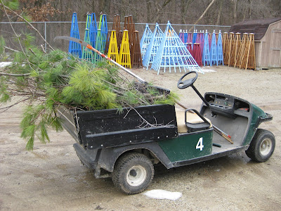 We had a superb turnout of volunteers today. I missed most of the action with my seed delivery but was back to observe the cart loads of debris (above) coming back regularly. Dick W. and Terry finishe